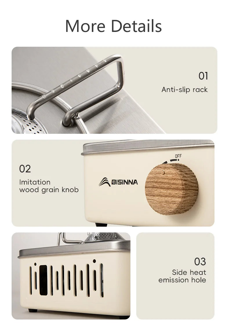The BISINNA Camping Gas Stove 2800W is a portable cassette-style gas burner designed for outdoor use like camping, picnics, BBQs, or emergency situations. Here’s a quick breakdown of its main features and what makes it a solid option for outdoor cooking:
