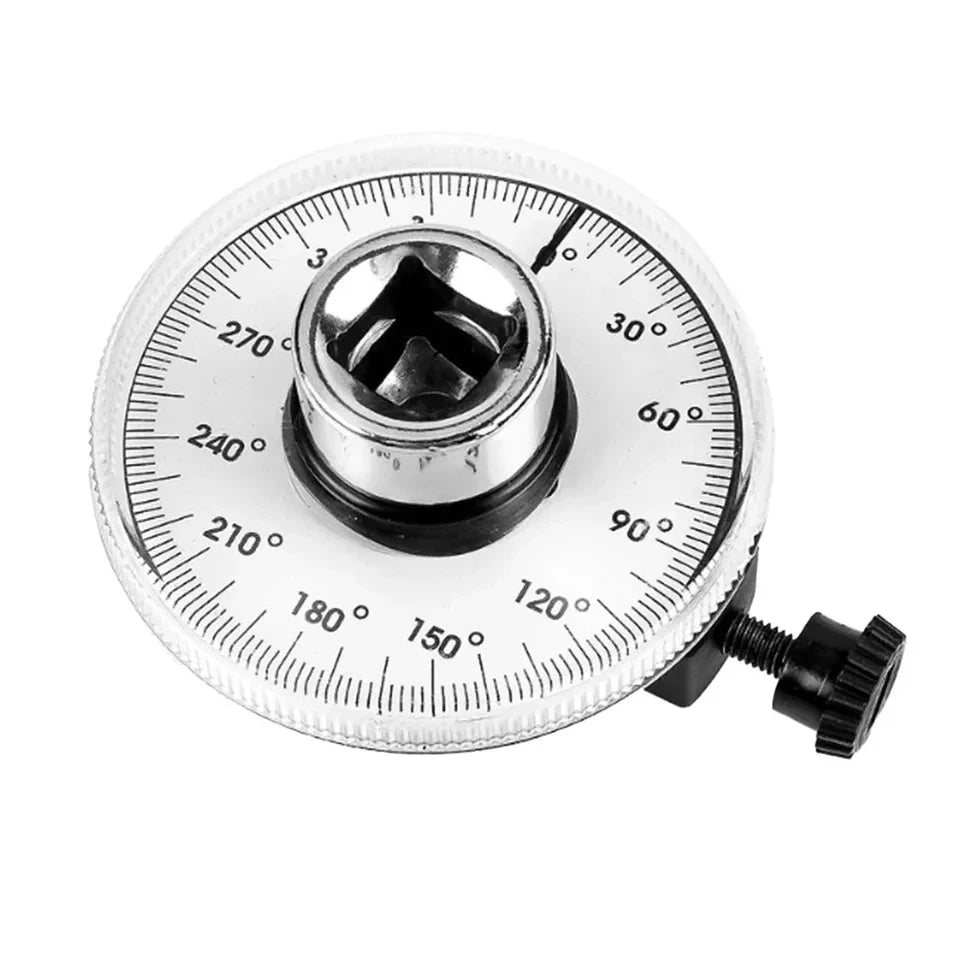 Rotating pointer scale calibrated in degrees for engine work and bolt angle settings