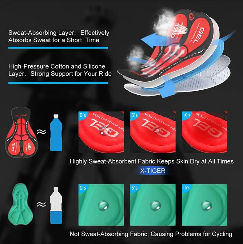5D Gel Padding: Offers enhanced cushioning in key pressure areas to reduce saddle soreness, especially useful for long-distance riding.